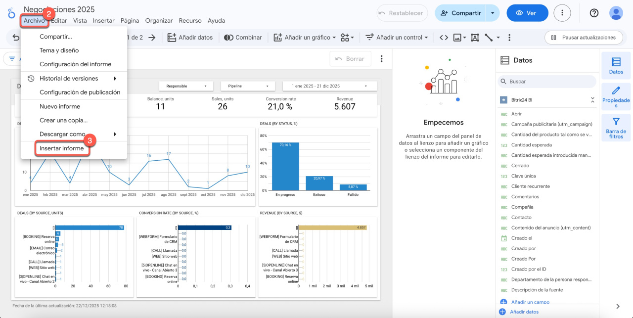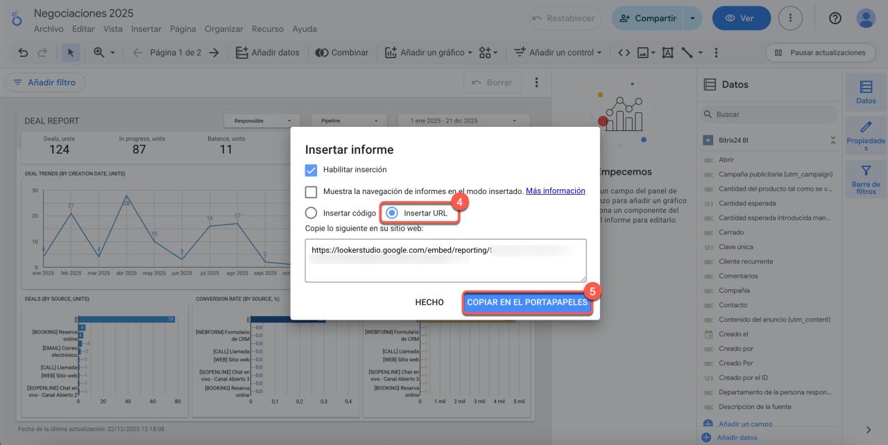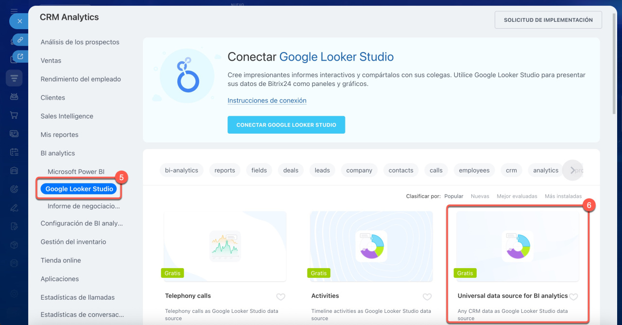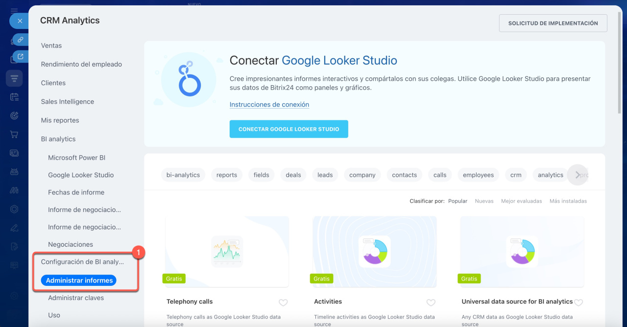 - Conecta Google Looker Studio a Bitrix24 utilizando el Conector BI.