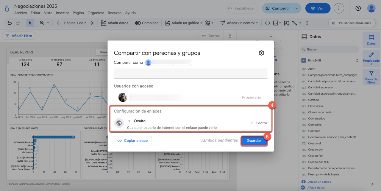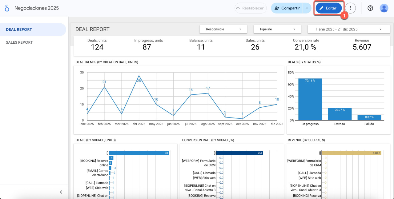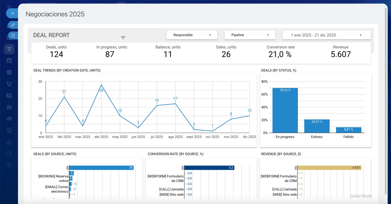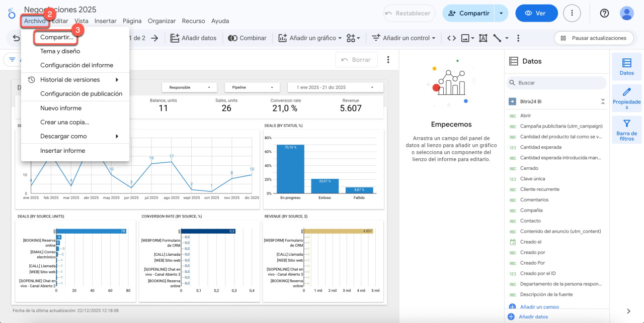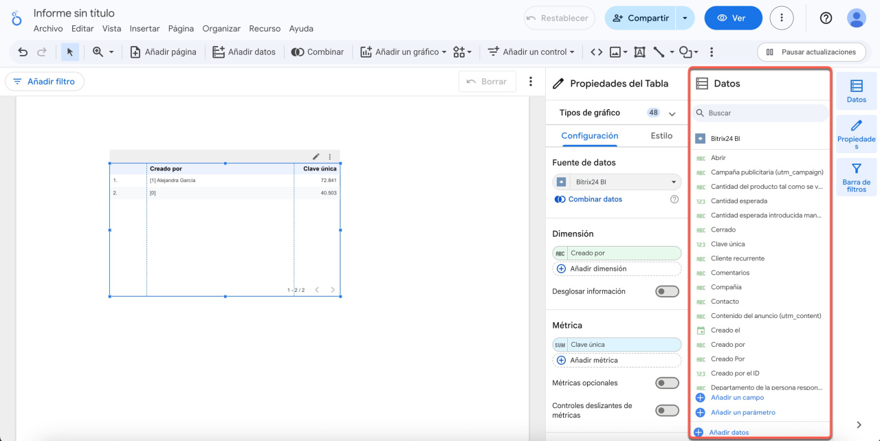 - Conecta Google Looker Studio a Bitrix24 utilizando el Conector BI.