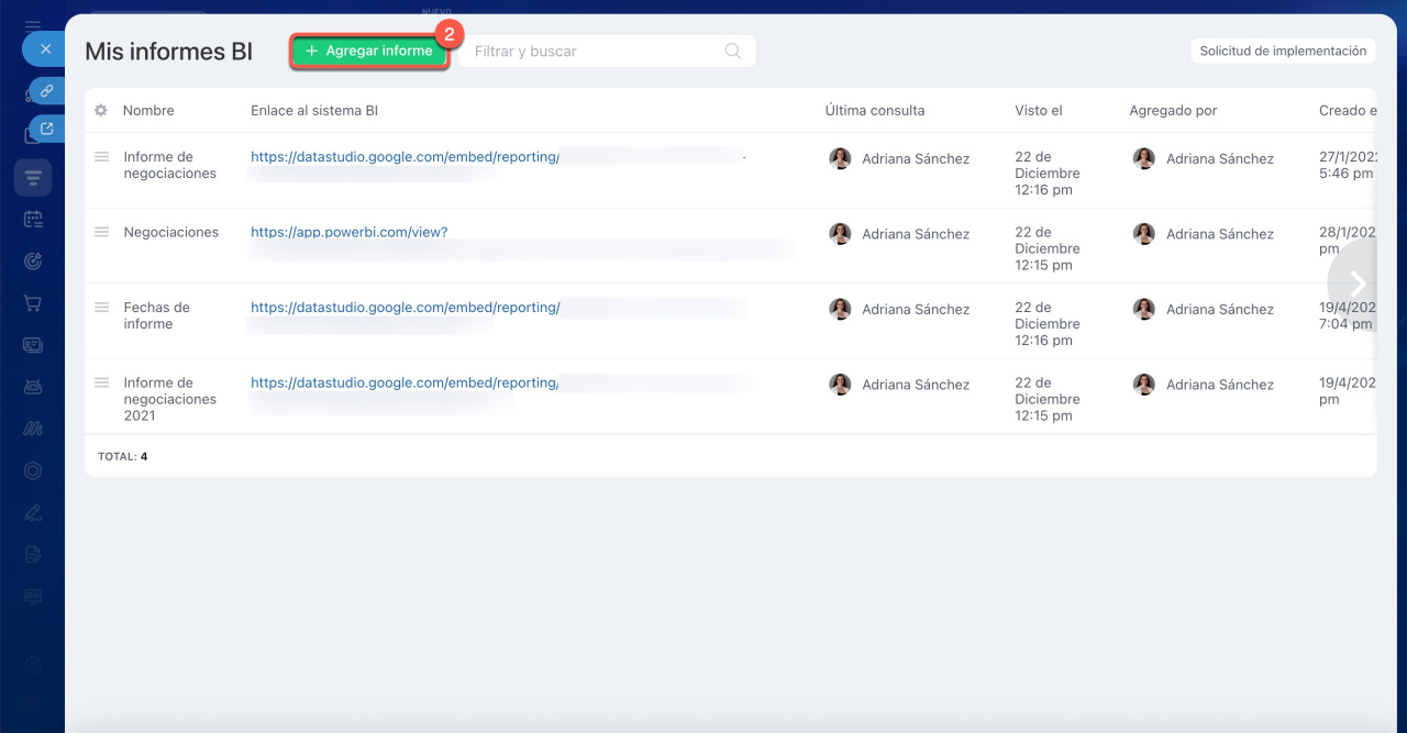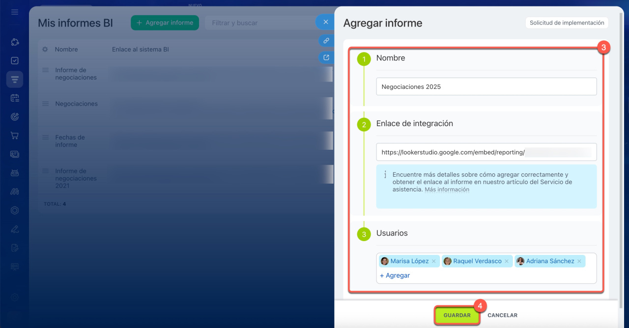 - Añade el informe a Bitrix24 para que tu equipo pueda verlo directamente en la cuenta.