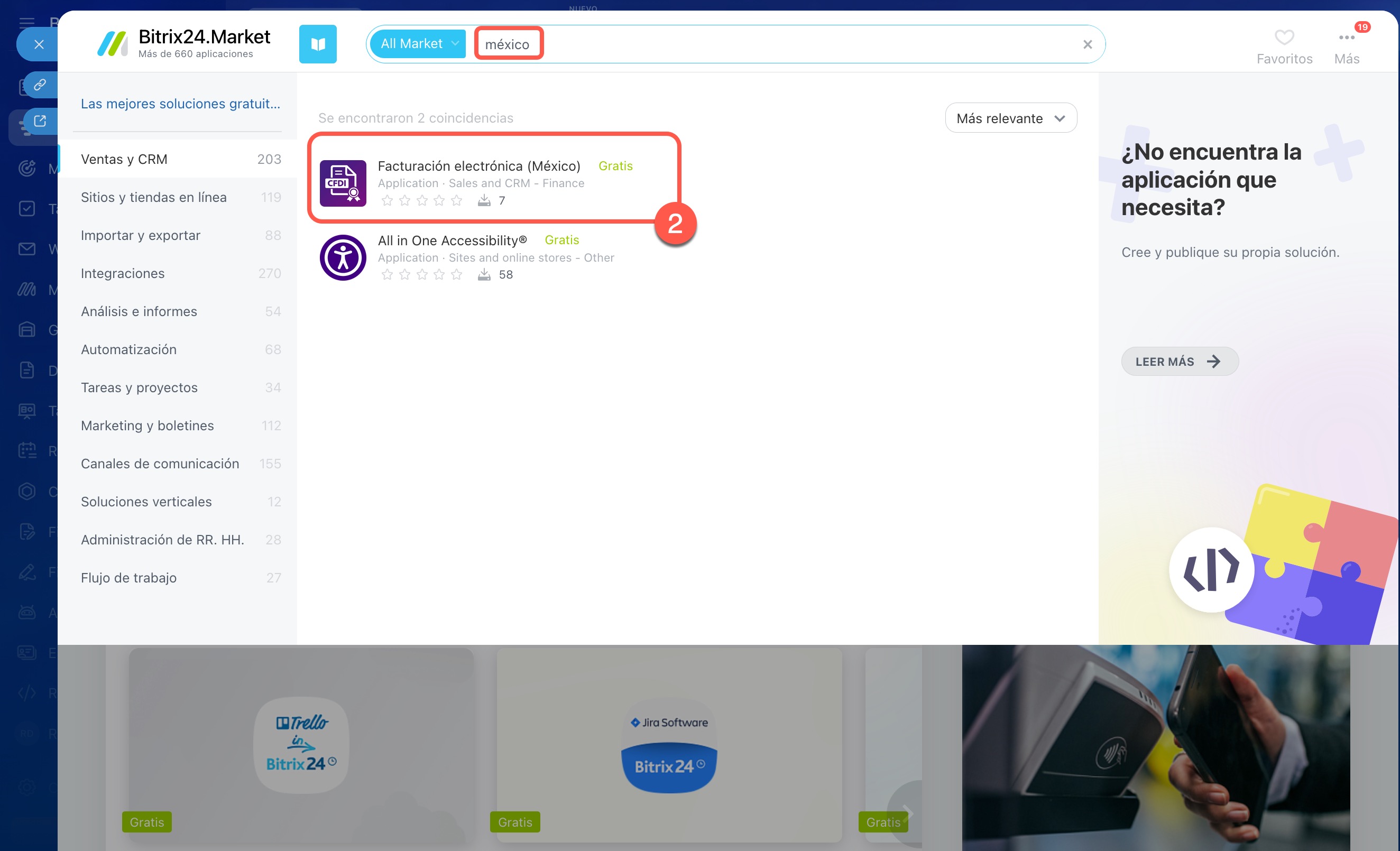 - 2. Busca la aplicación Facturación electrónica (México) usando la barra de búsqueda.