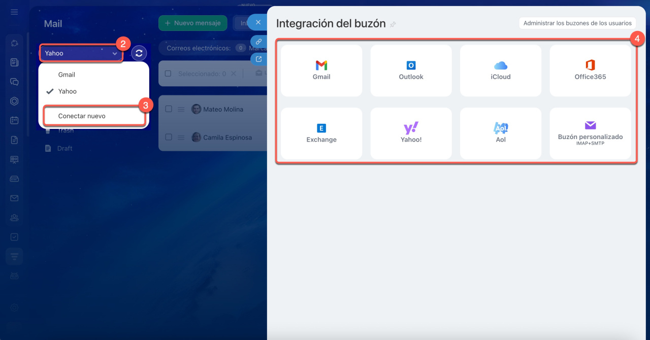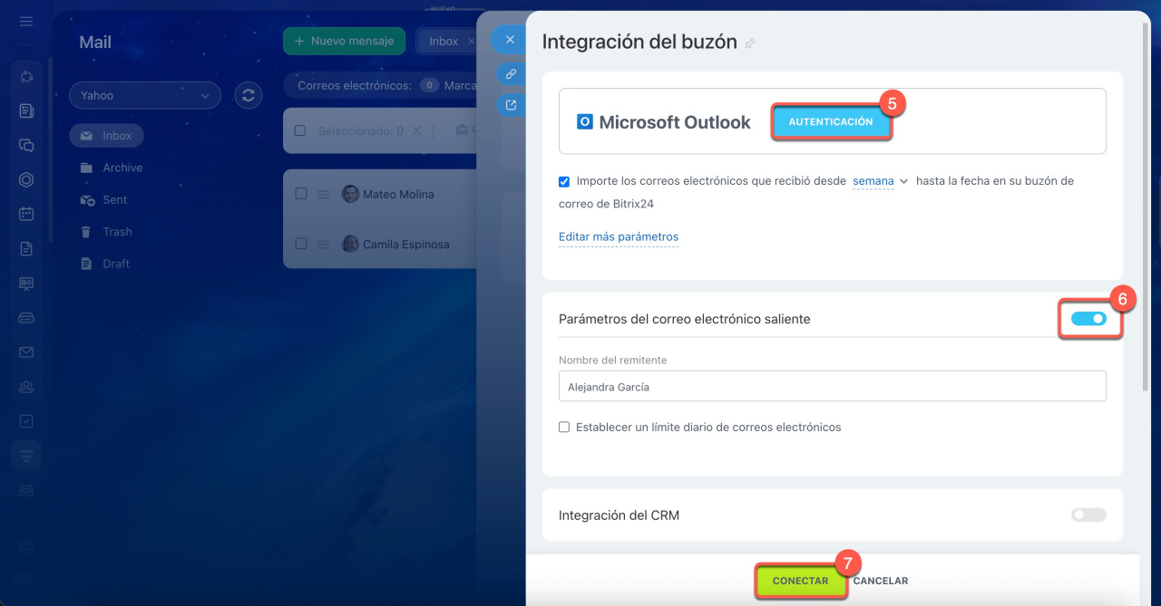 - Primero, conecta un buzón de correo en Bitrix24 o configura un servidor SMTP.