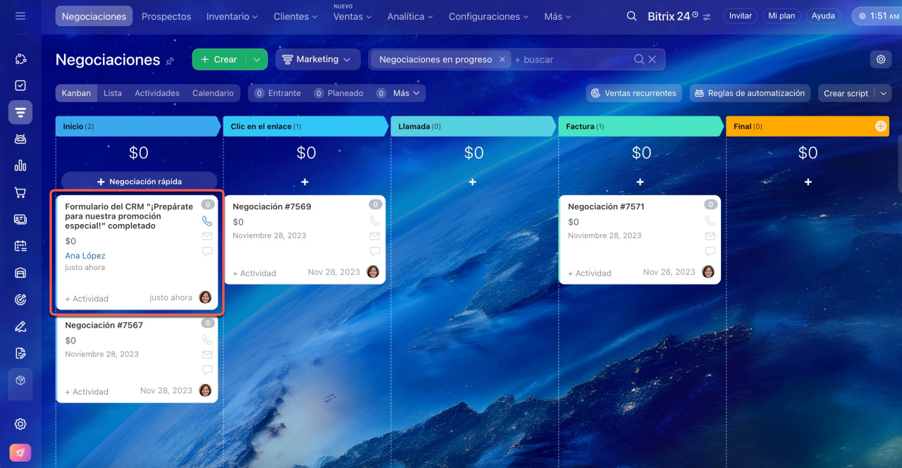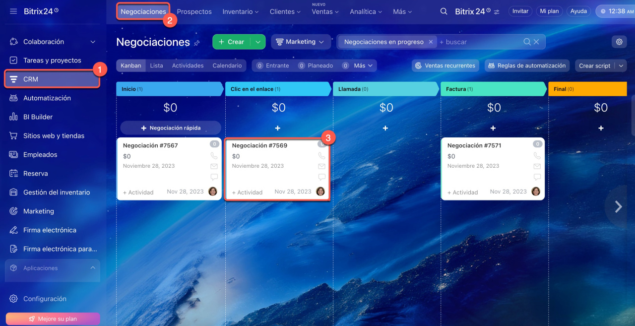 1-3. Ve a CRM > Negociaciones y abre cualquier ficha.