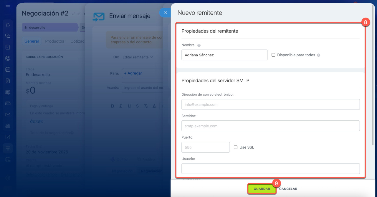 8-9. Introduce los datos del servidor SMTP y haz clic en Guardar.