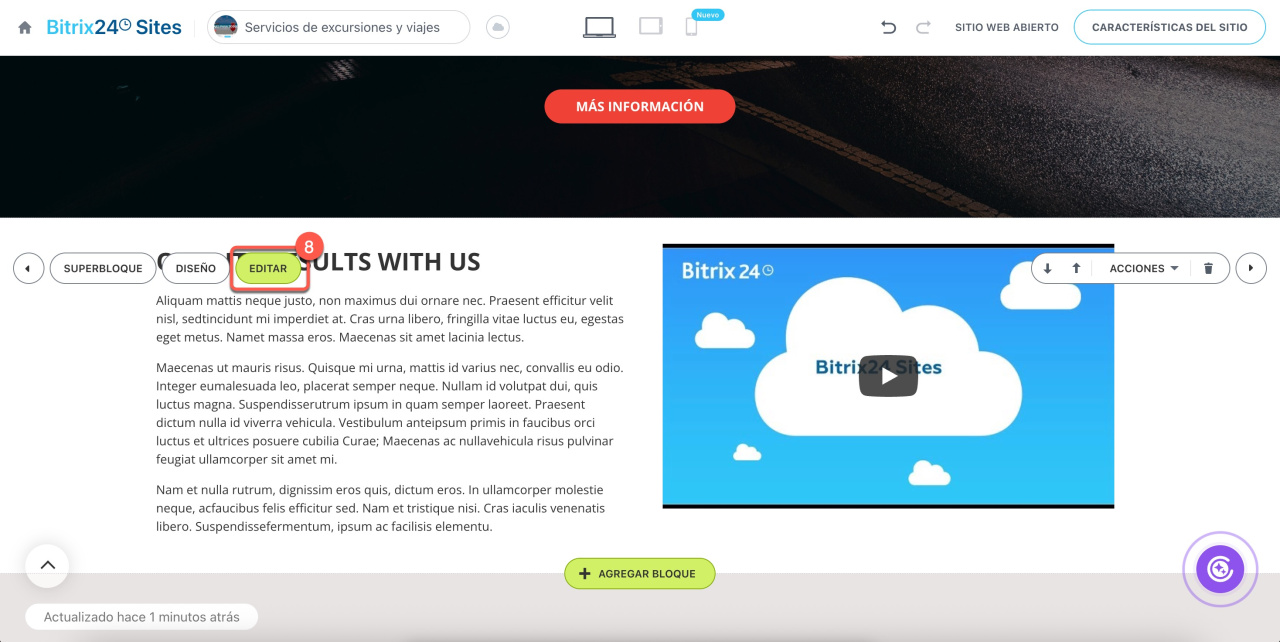 8. Haz clic en Editar dentro del nuevo bloque para configurarlo.