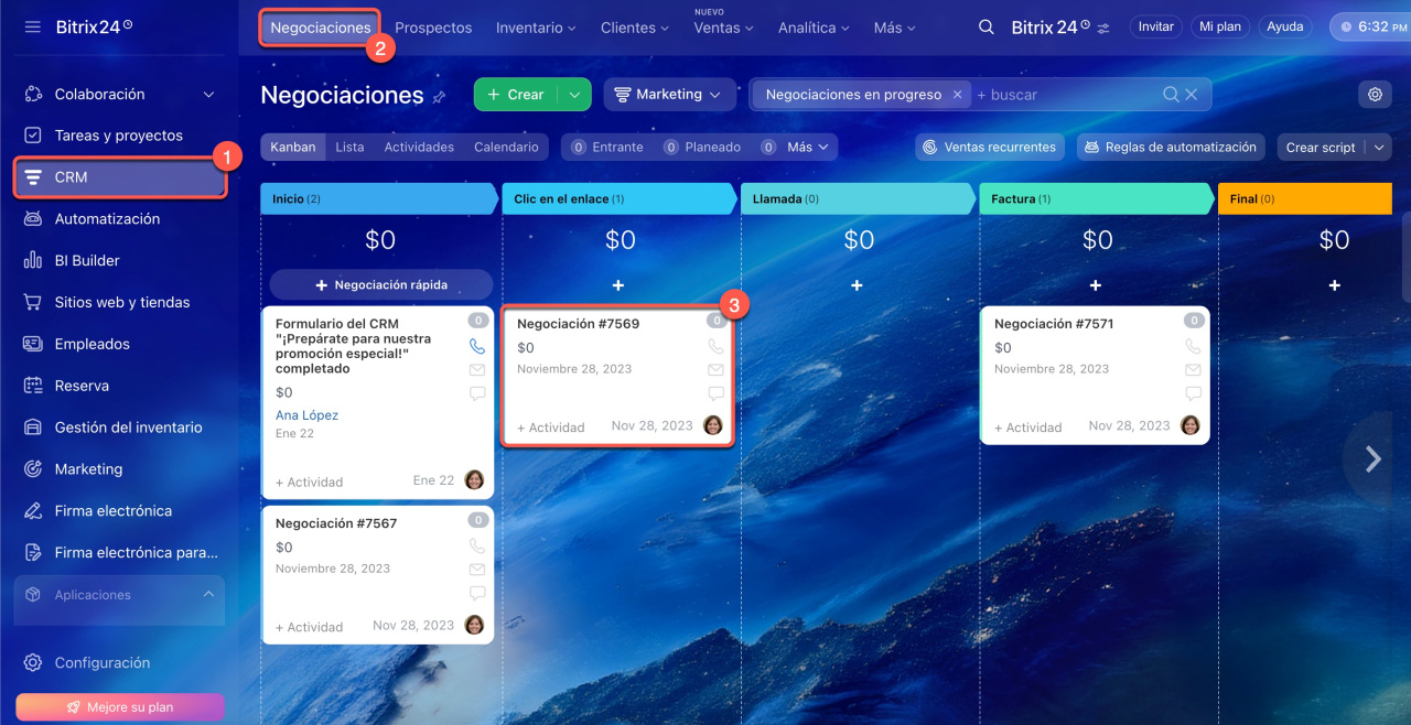 1-3. Ve a CRM y abre la ficha del elemento que quieras editar.