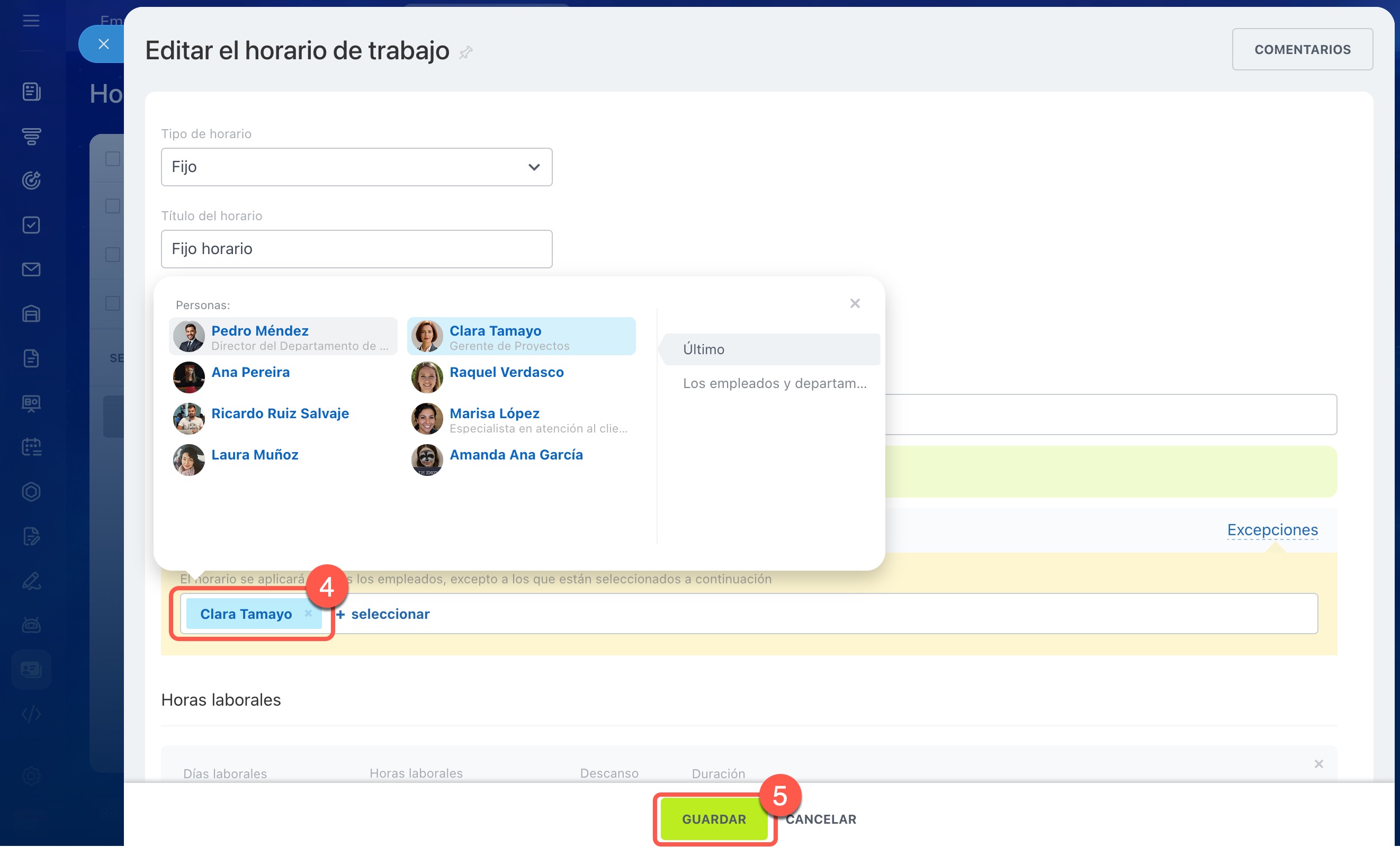 4–5. Agrega a los empleados necesarios a la lista y guarda los cambios.