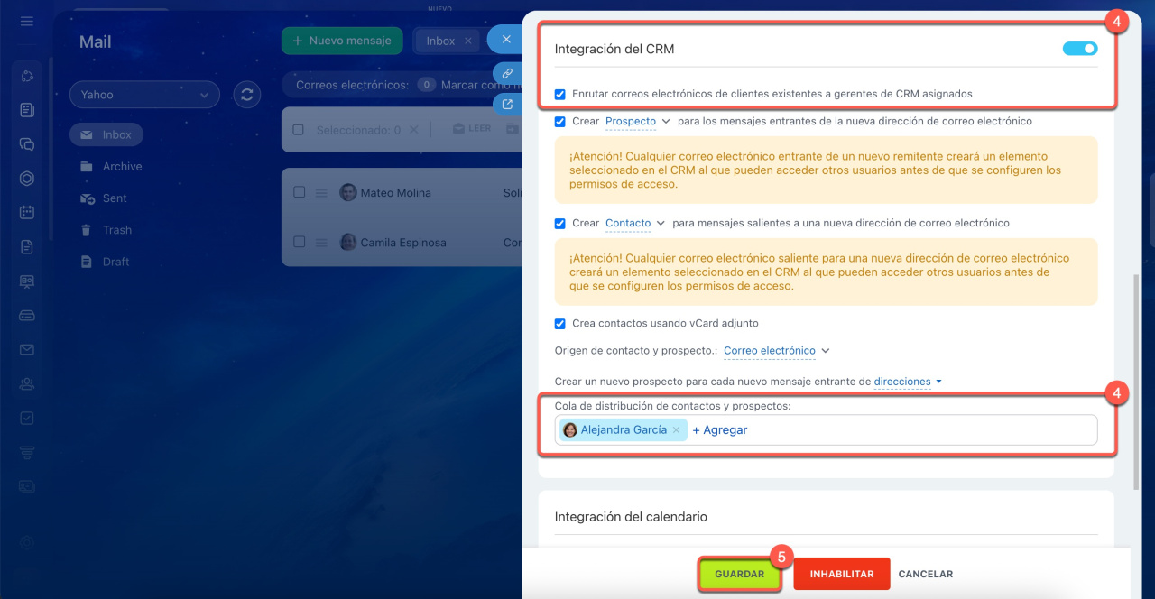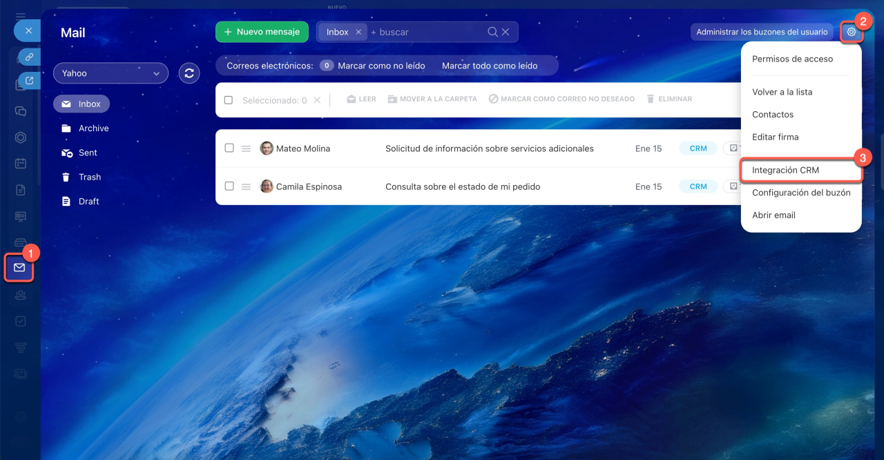 1-3. Ve a Webmail > Configuración (⚙️) > Integración CRM.