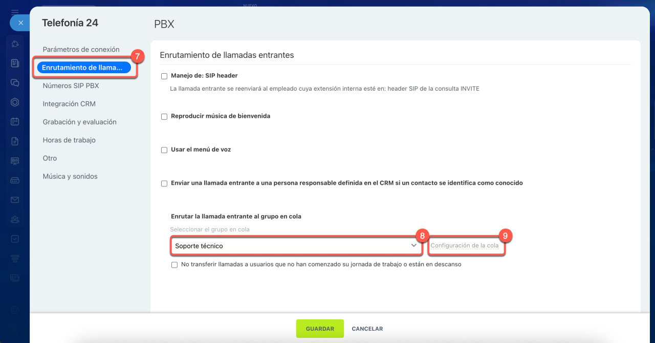 Distribuir llamadas desde la telefonía