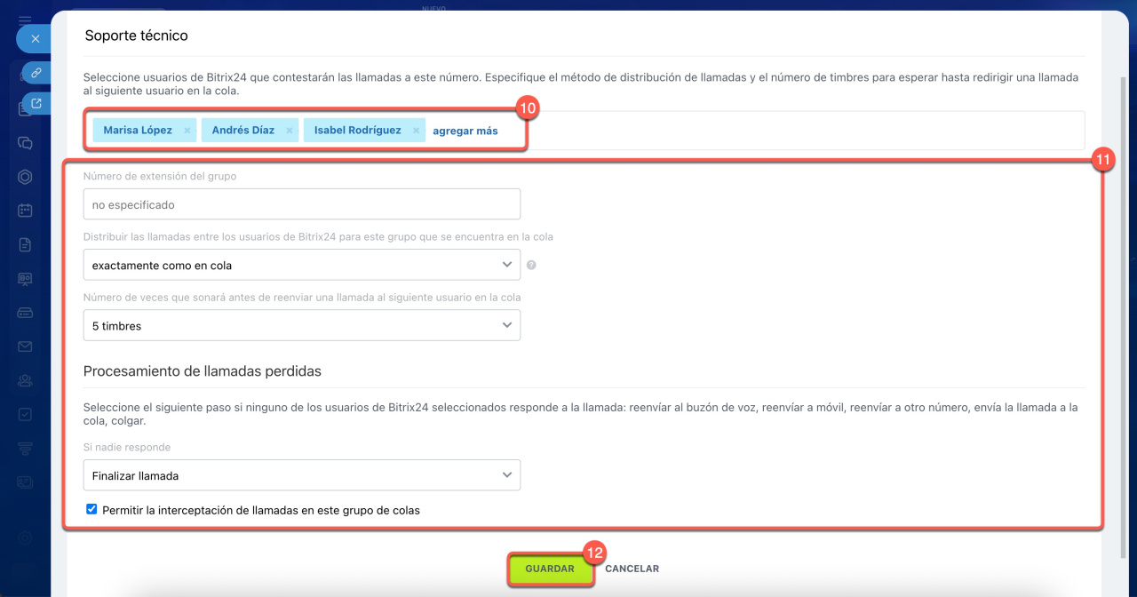 10. Especifica los empleados que recibirán las llamadas. El orden es importante si usas el método de distribución Exactamente como en cola.