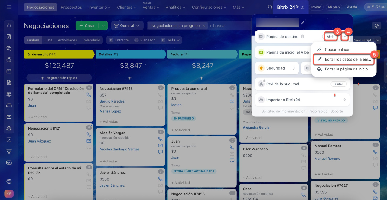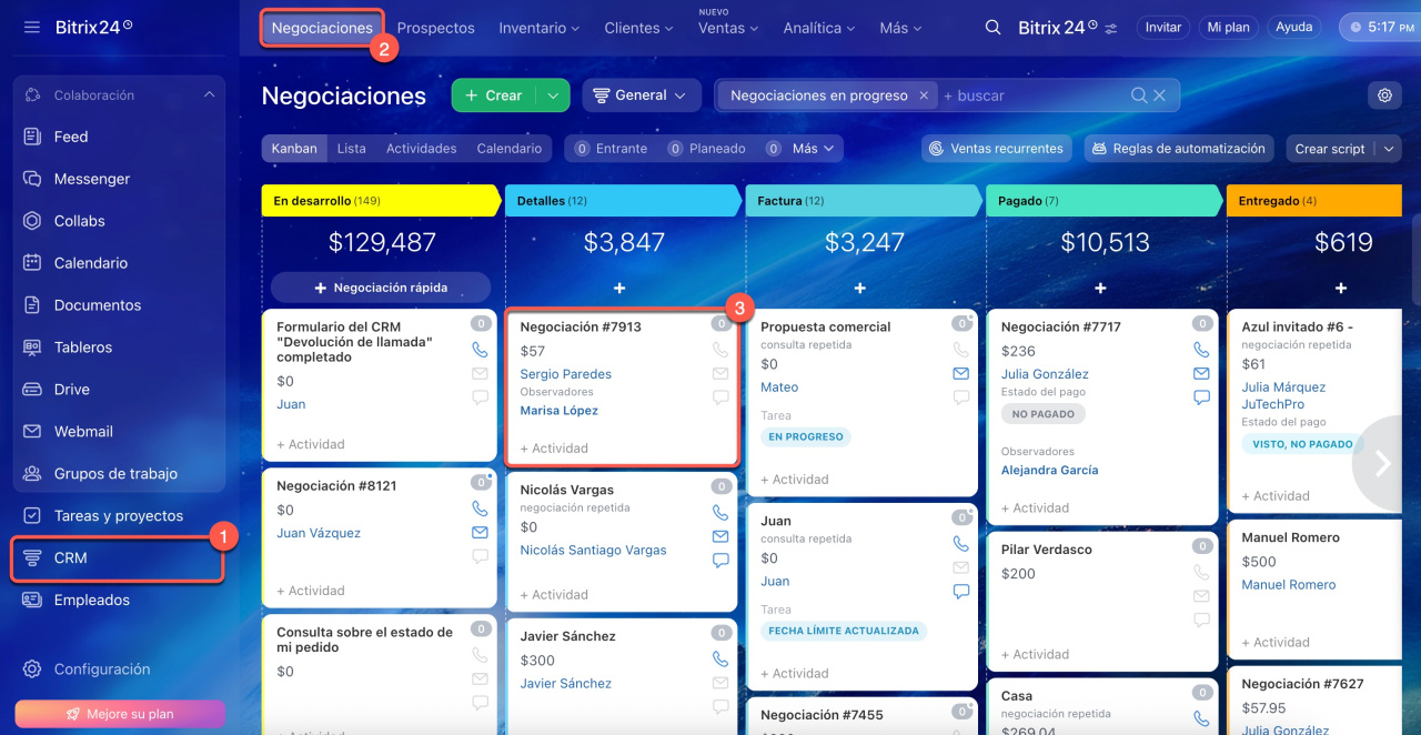 1-3. Ve a CRM > Negociaciones y selecciona la negociación requerida.