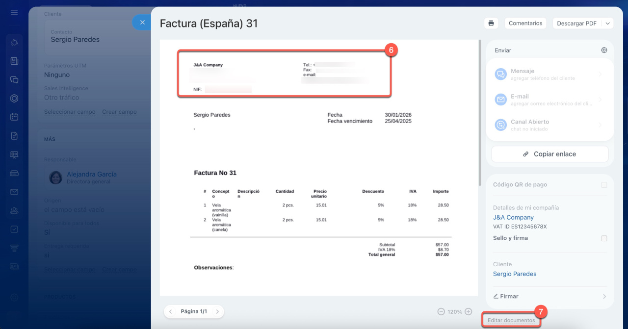 6. Comprueba que los detalles de tu compañía aparezcan correctamente en el documento generado.