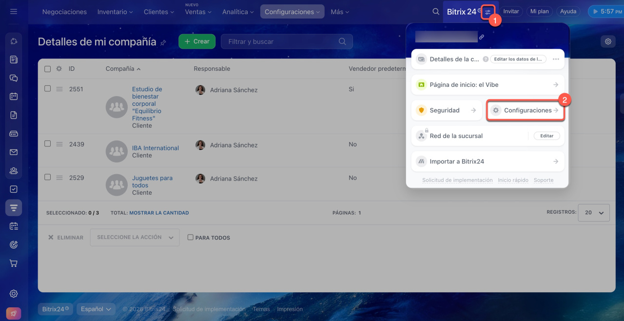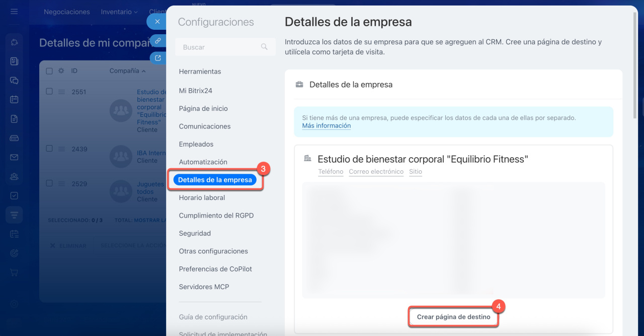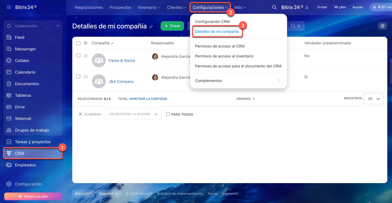 1-3. Ve a CRM > Configuraciones > Detalles de mi compañía.