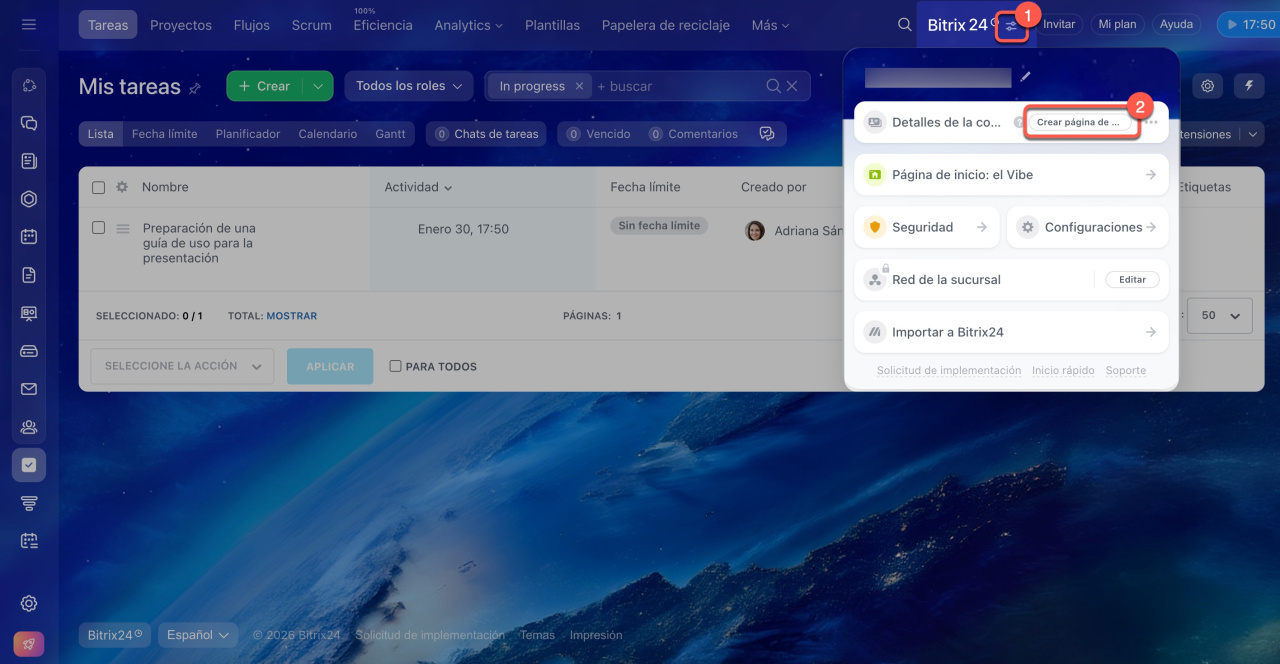 Si tienes varias compañías en tu Bitrix24, puedes crear una página de destino con los detalles de cada una.