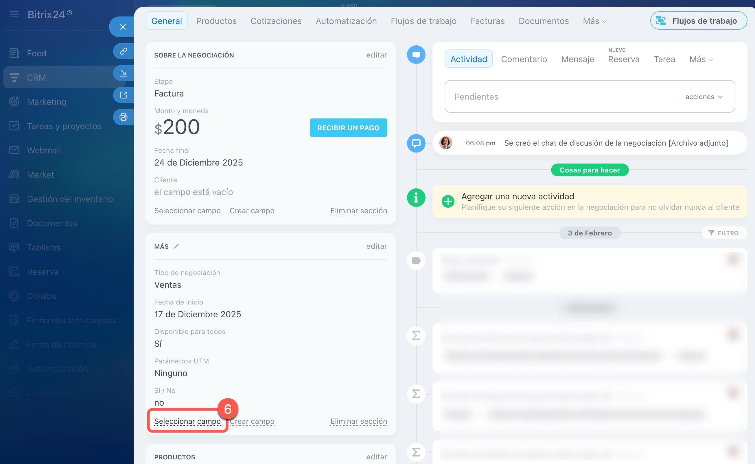 1–3. Ve a la sección CRM > Negociaciones y abre la que necesites.