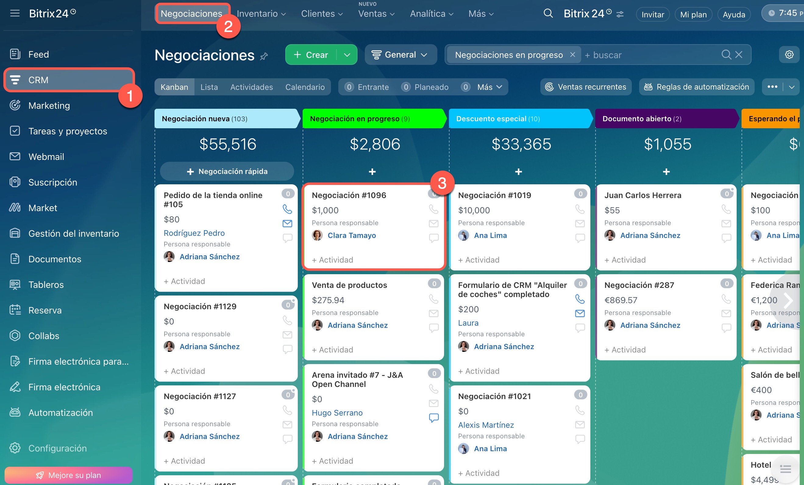 1–2. Ve a CRM > Negociaciones.