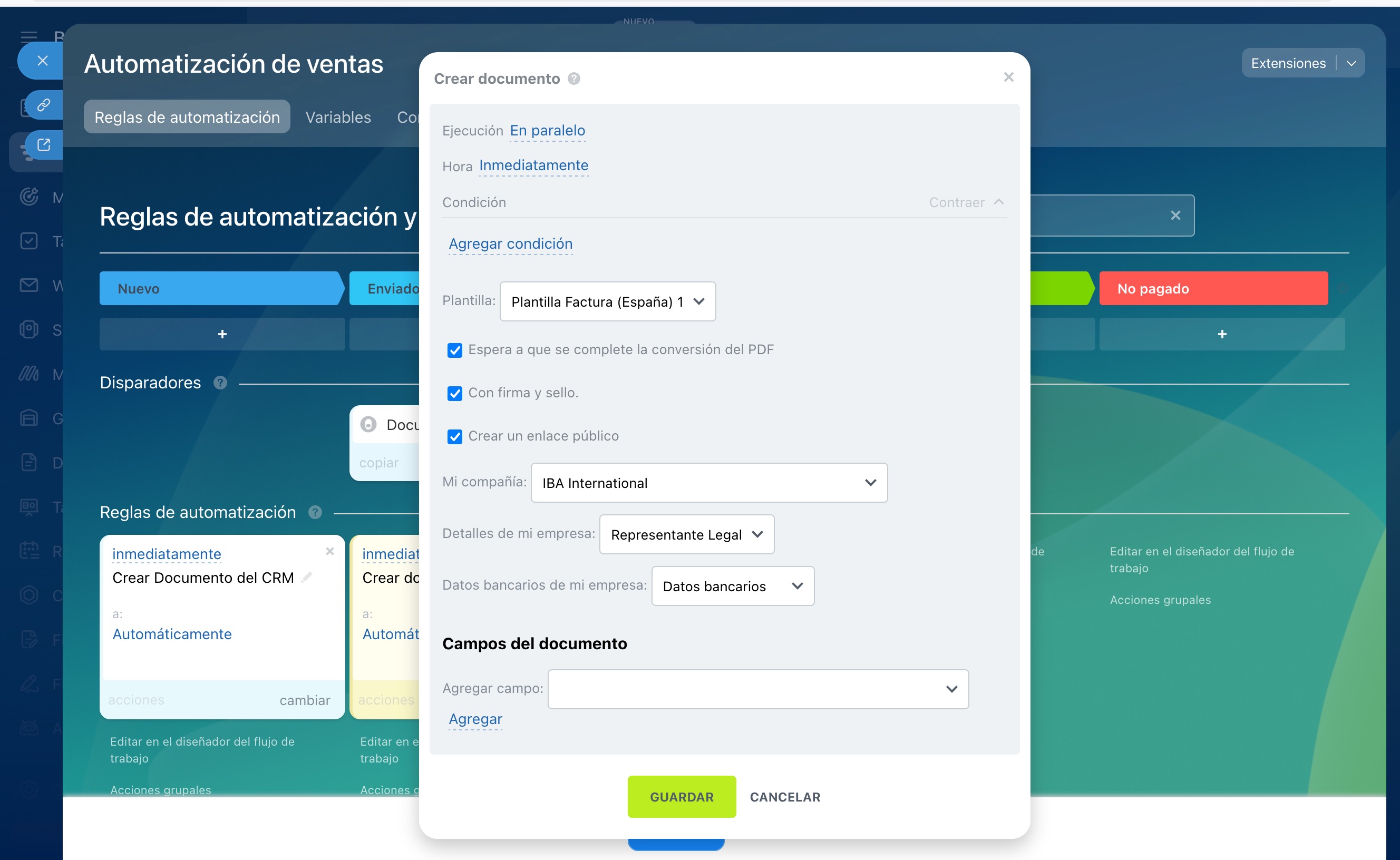 Reglas de automatización en CRM