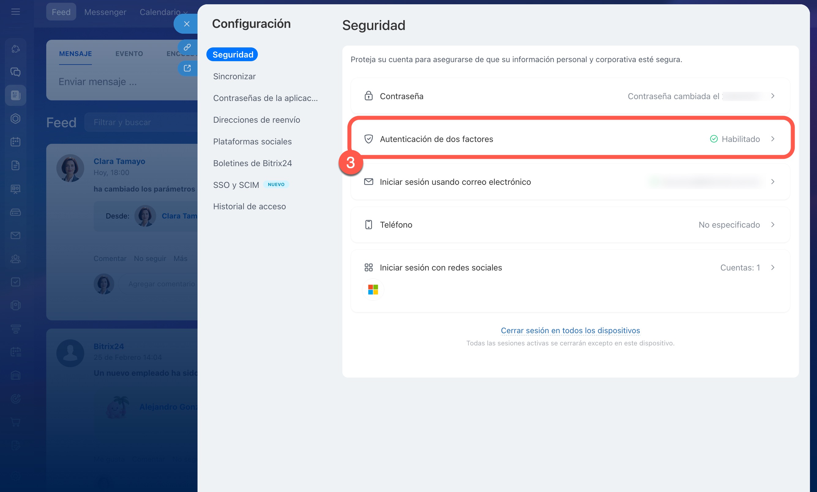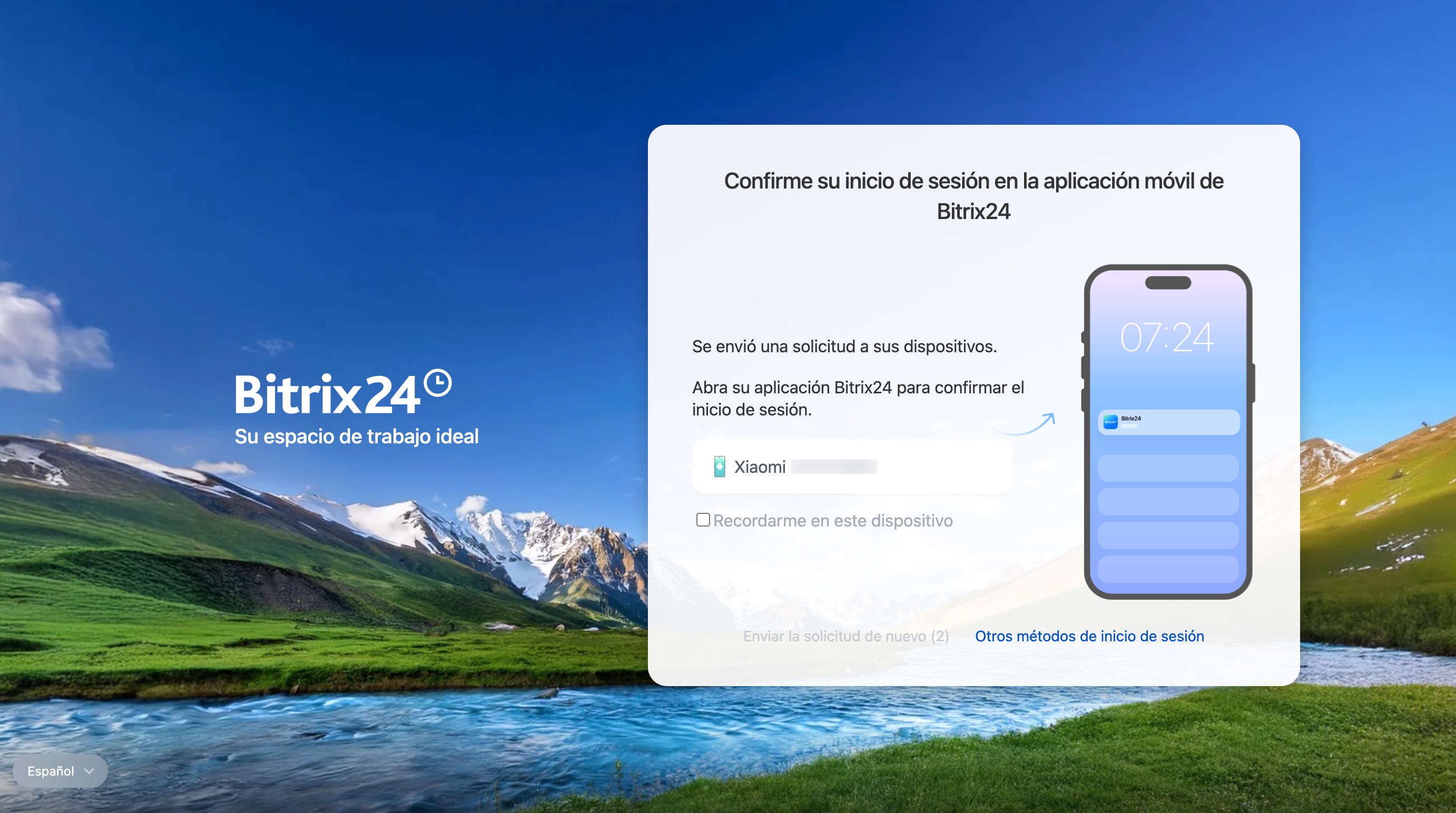 El dispositivo desde el cual confirmaste el inicio de sesión en Bitrix24 se denomina dispositivo de confianza. Puedes cambiarlo en cualquier momento.