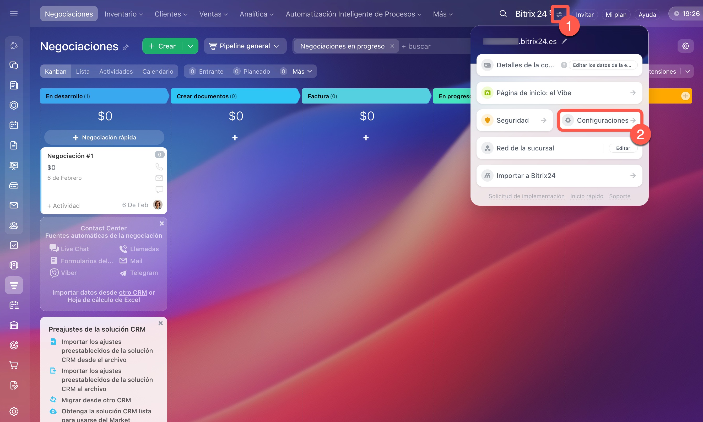 1–2. Ve a Configuraciones (⚙️) de Bitrix24.