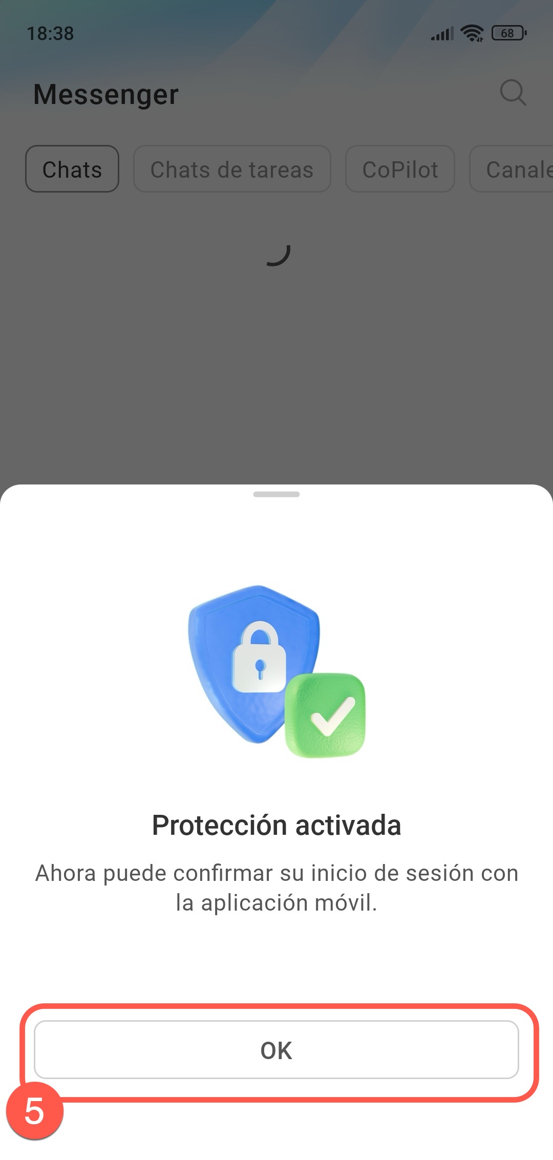 5. En la aplicación móvil, toca OK — la protección está activada.