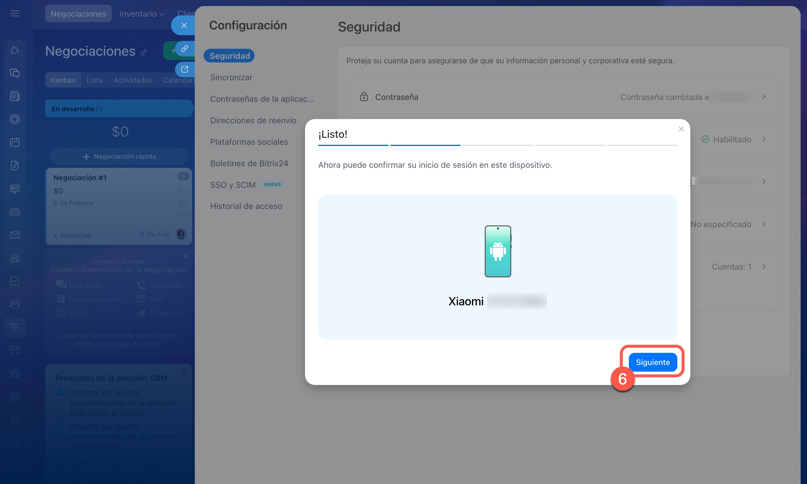 6. En Bitrix24 en la computadora, haz clic en Siguiente.