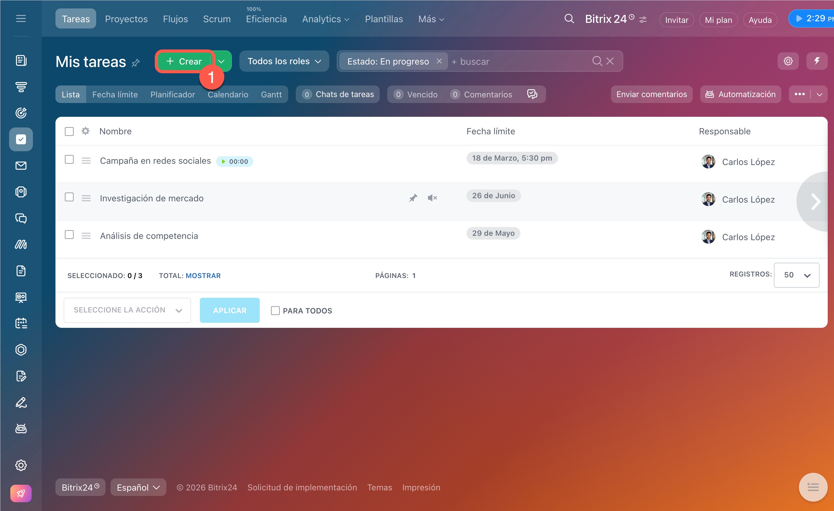 3. Haz clic en Crear tarea.