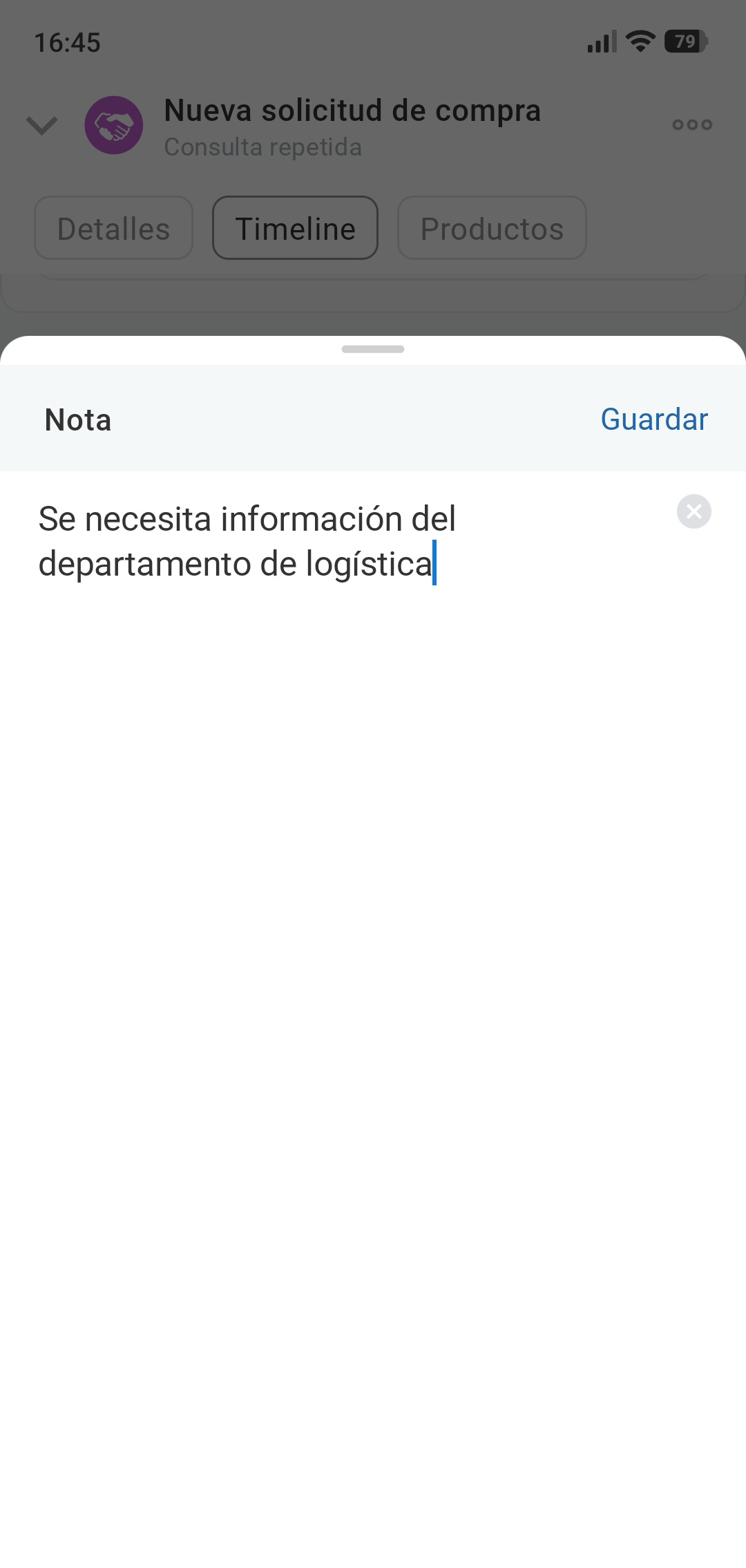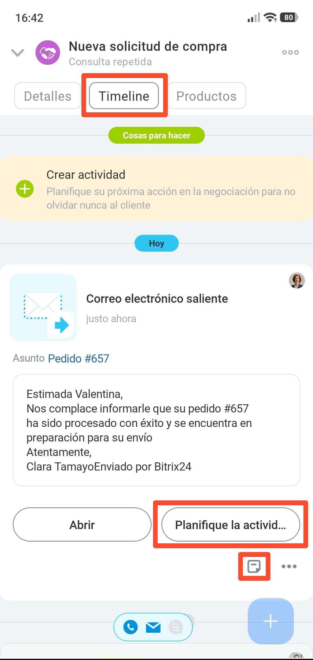 Añadir una nota o una actividad. En el timeline, en el registro del correo entrante o saliente, pulsa el icono del documento