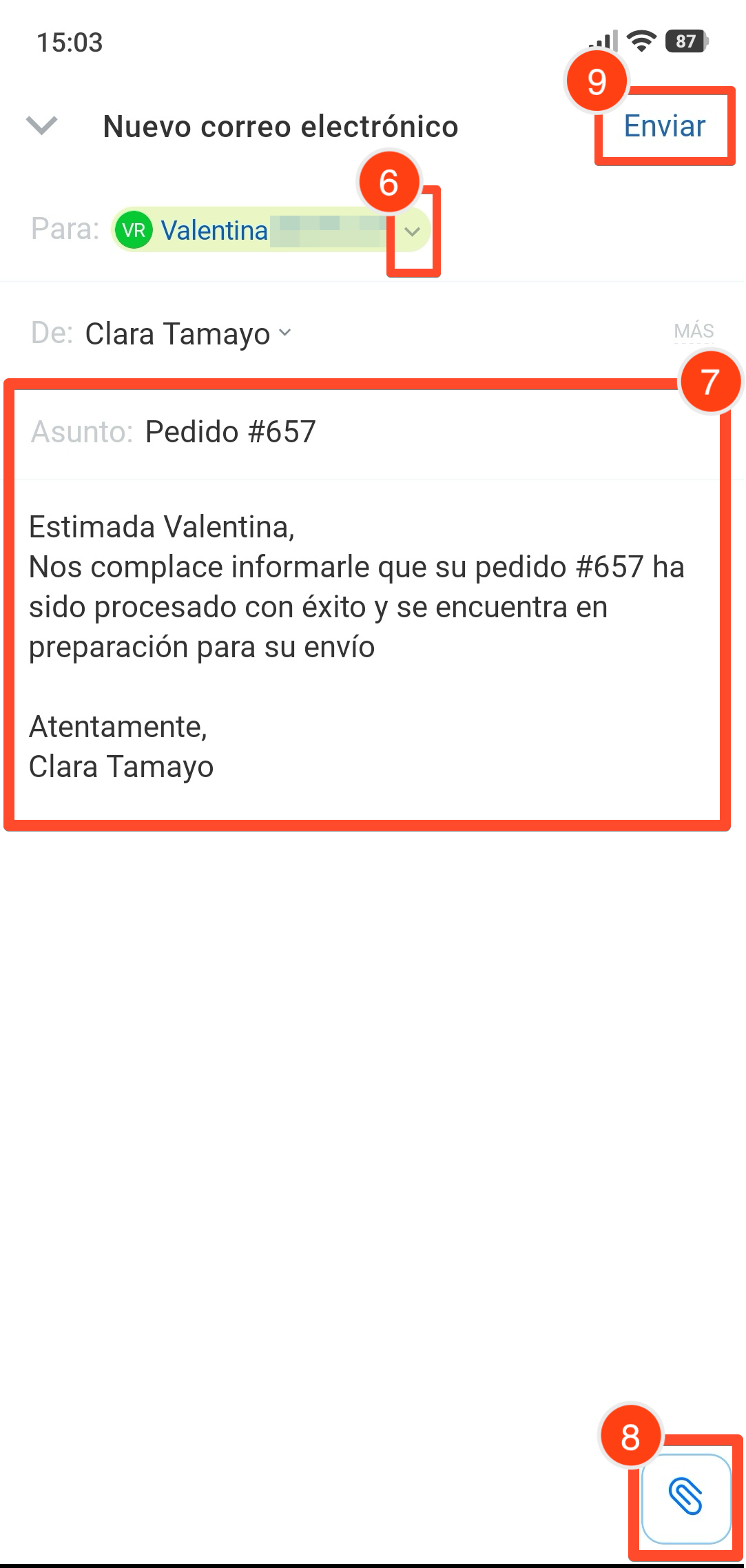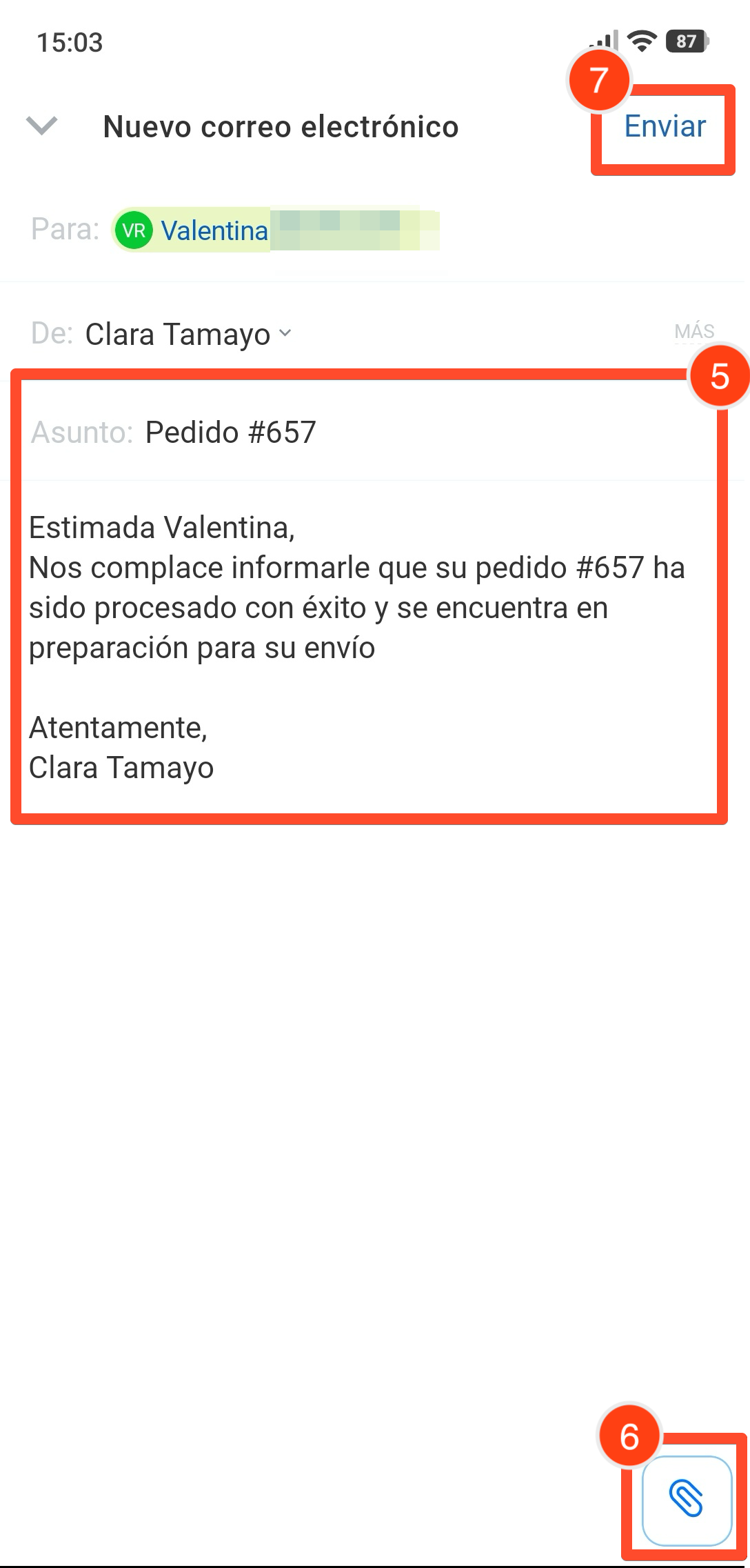 - Toca el correo electrónico del cliente — se abrirá la ventana para crear el mensaje.