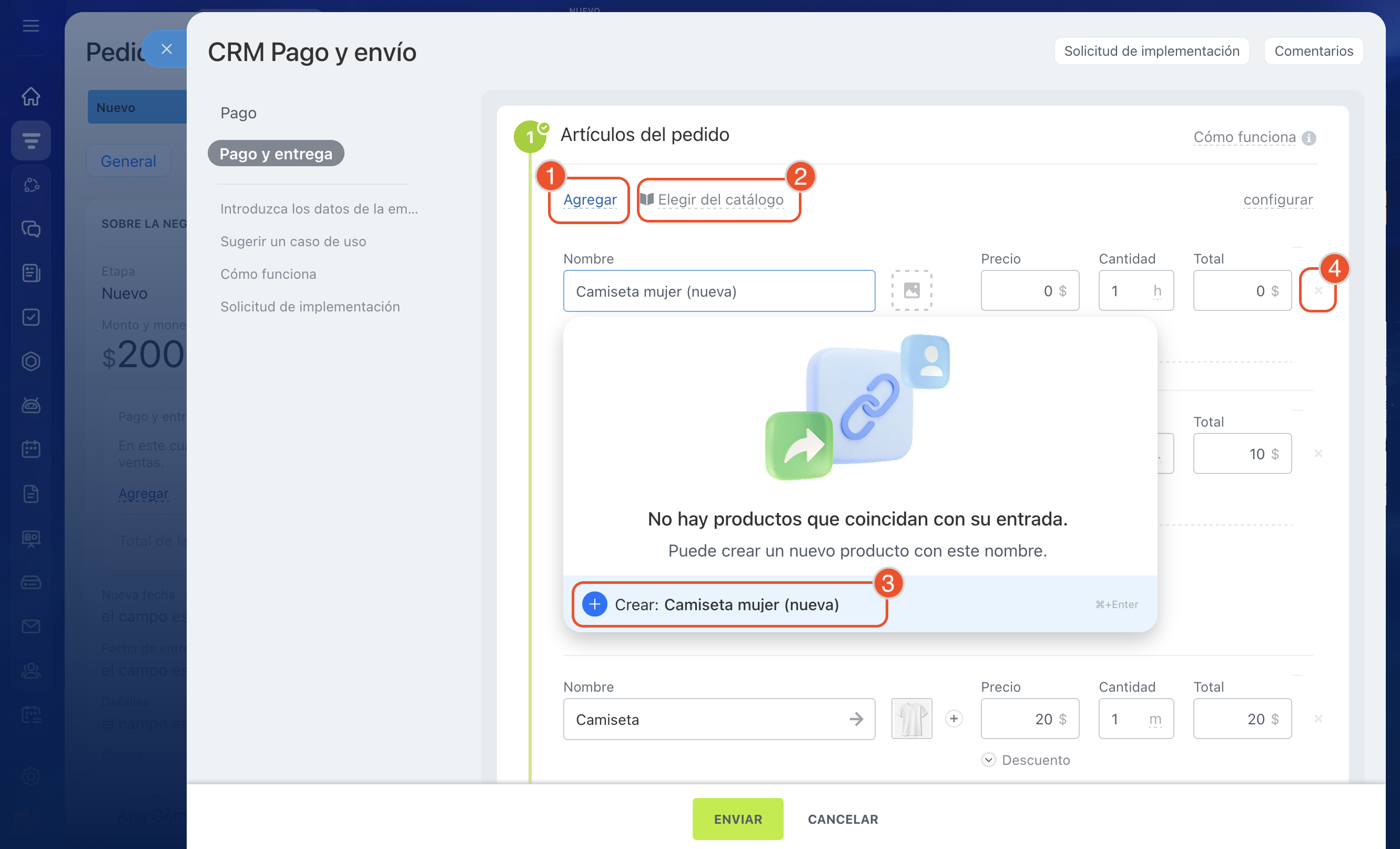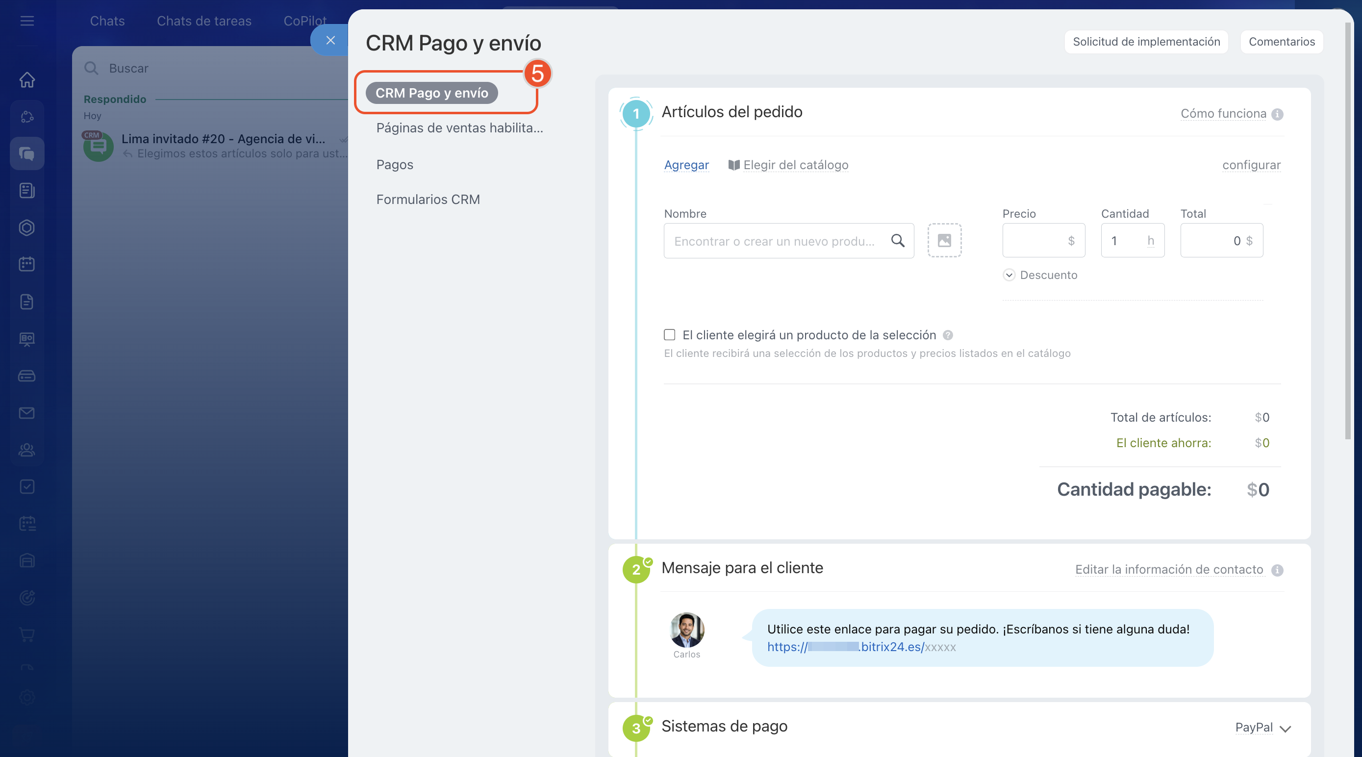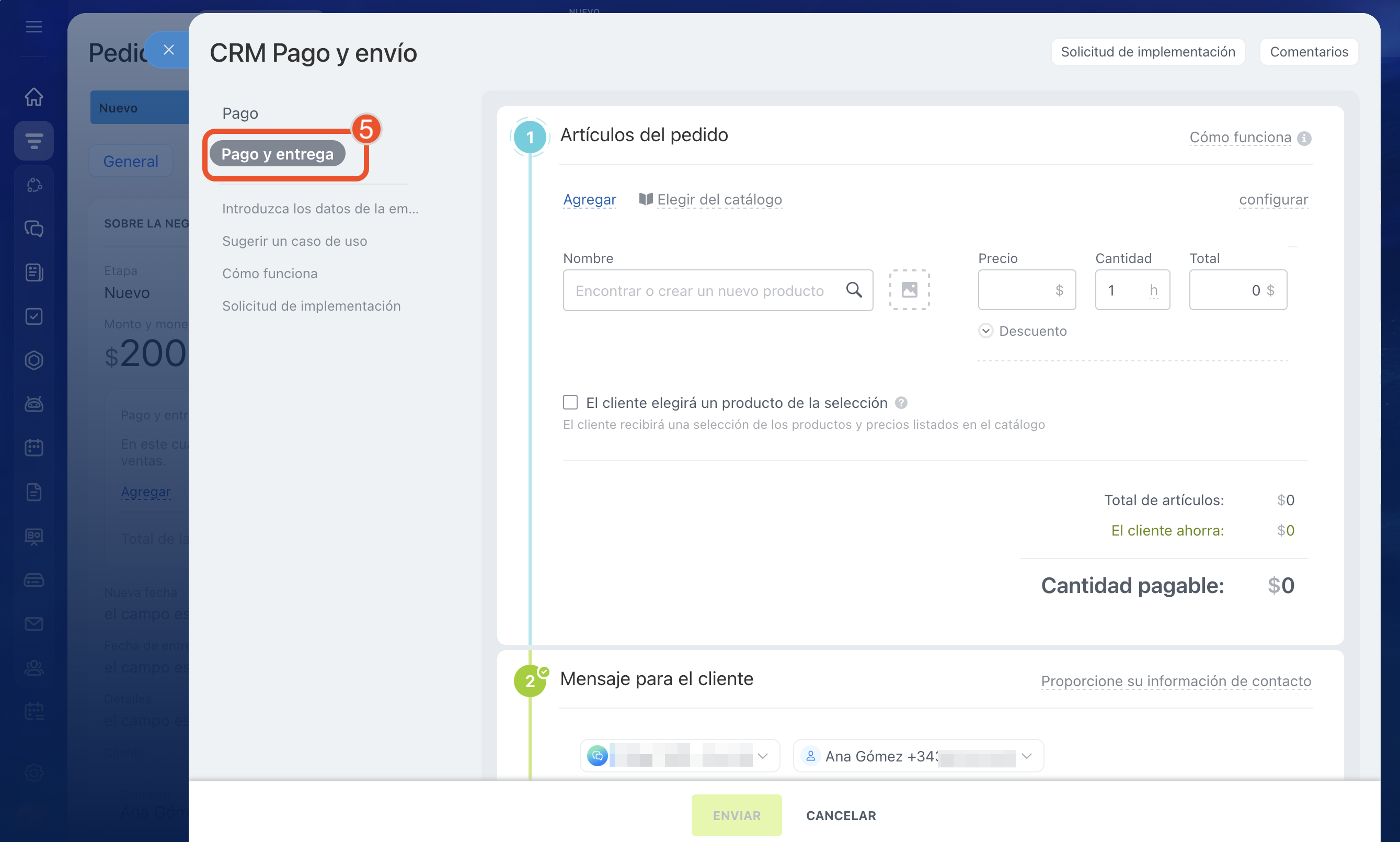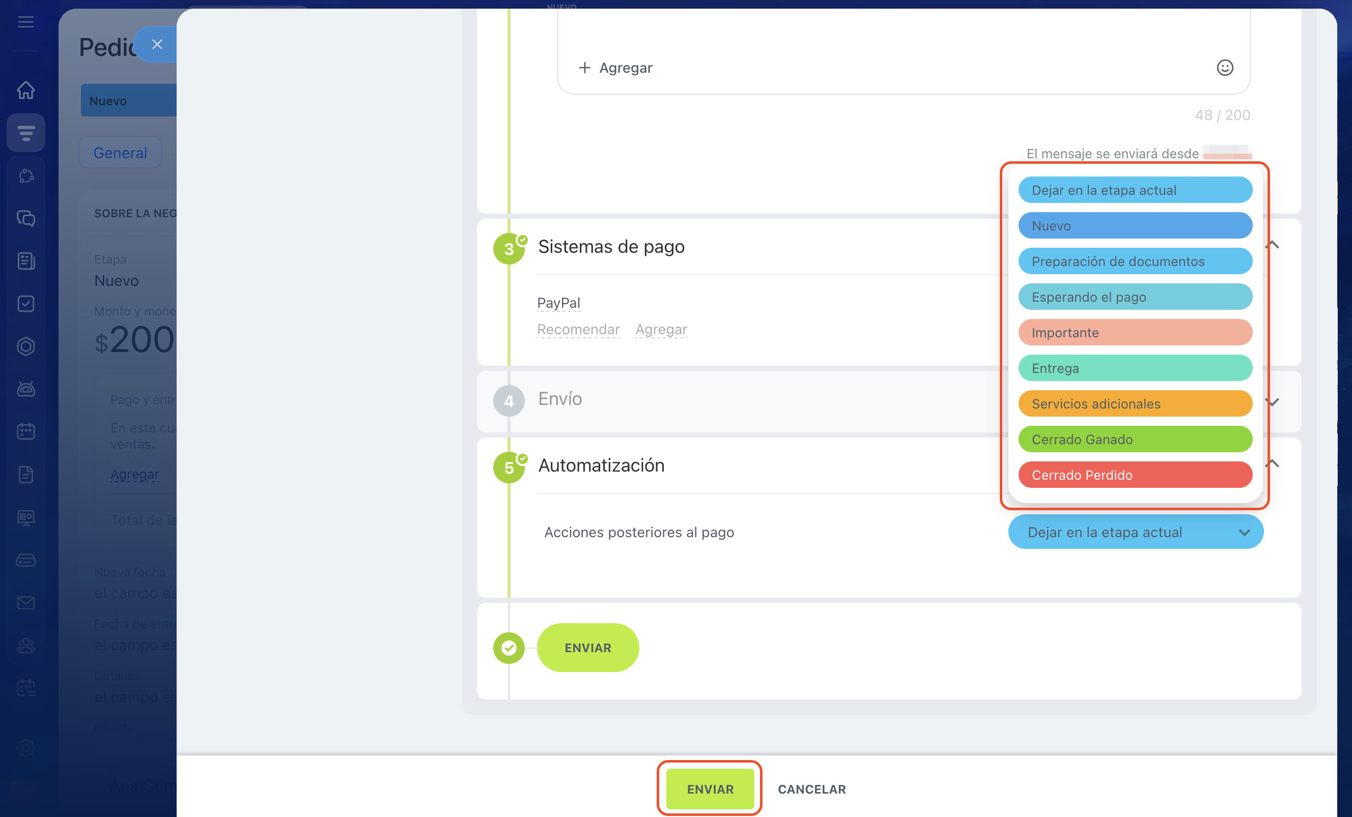 5. Selecciona el escenario CRM Pago y envío.