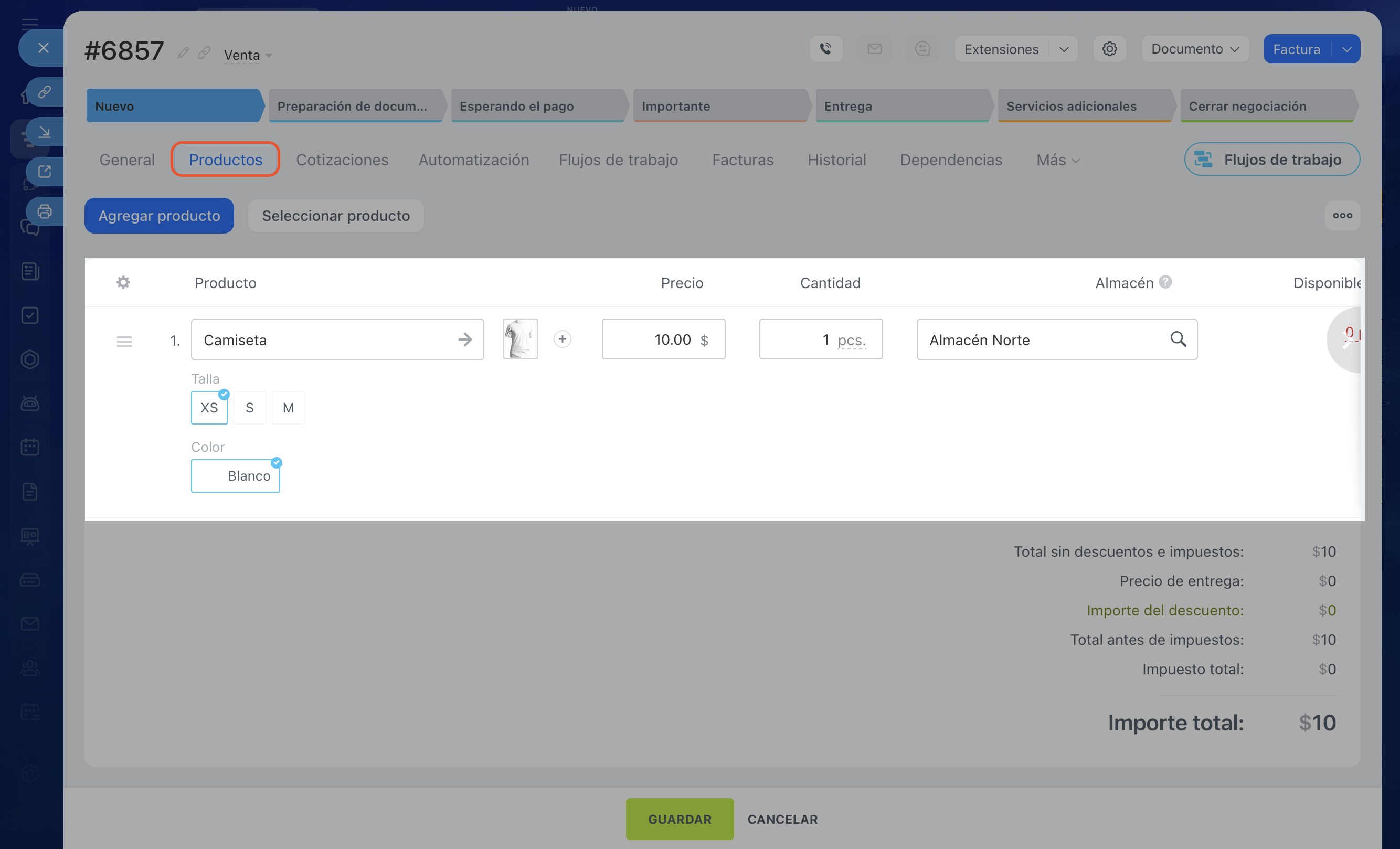 Cómo añadir productos a la ficha del CRM