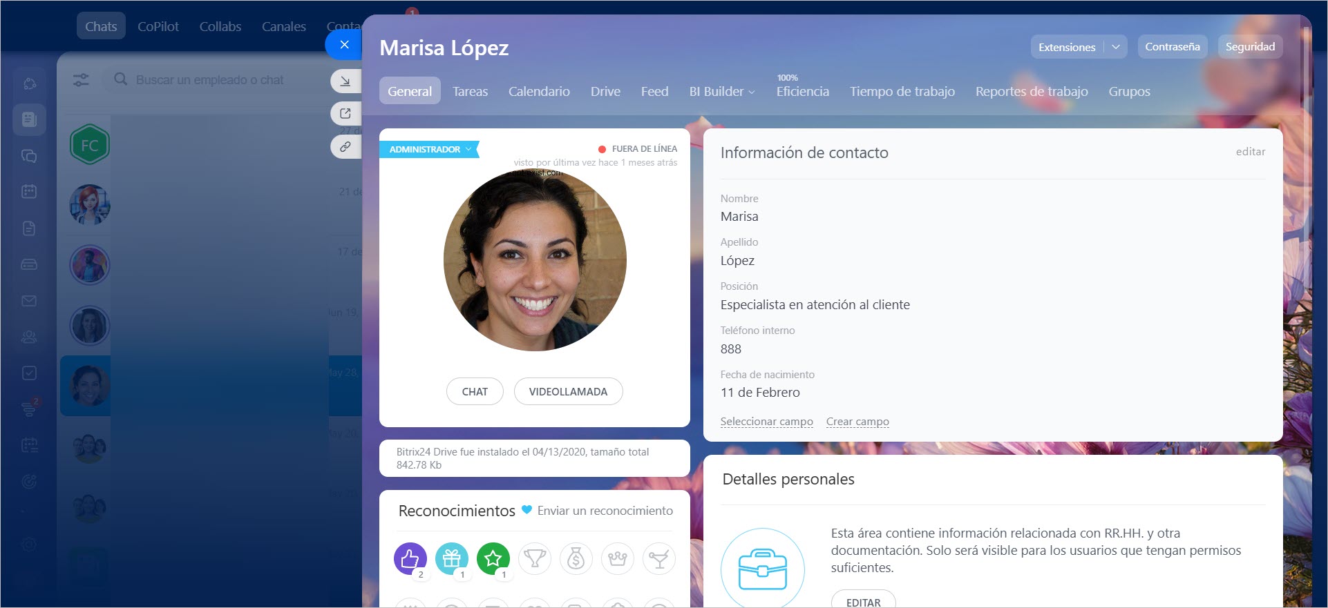 - Se puede acceder al perfil de un empleado desde cualquier herramienta de Bitrix24 haciendo clic en su foto.