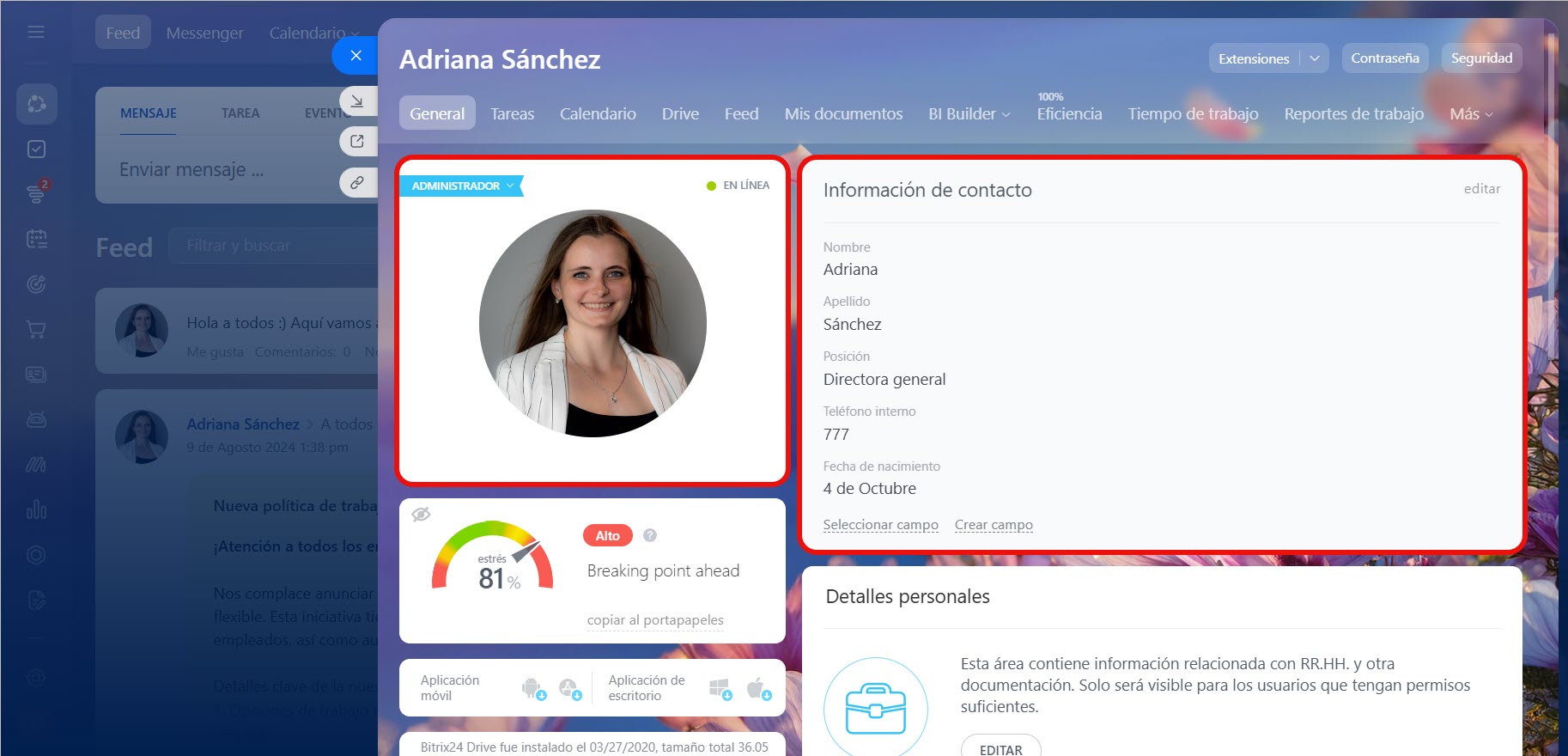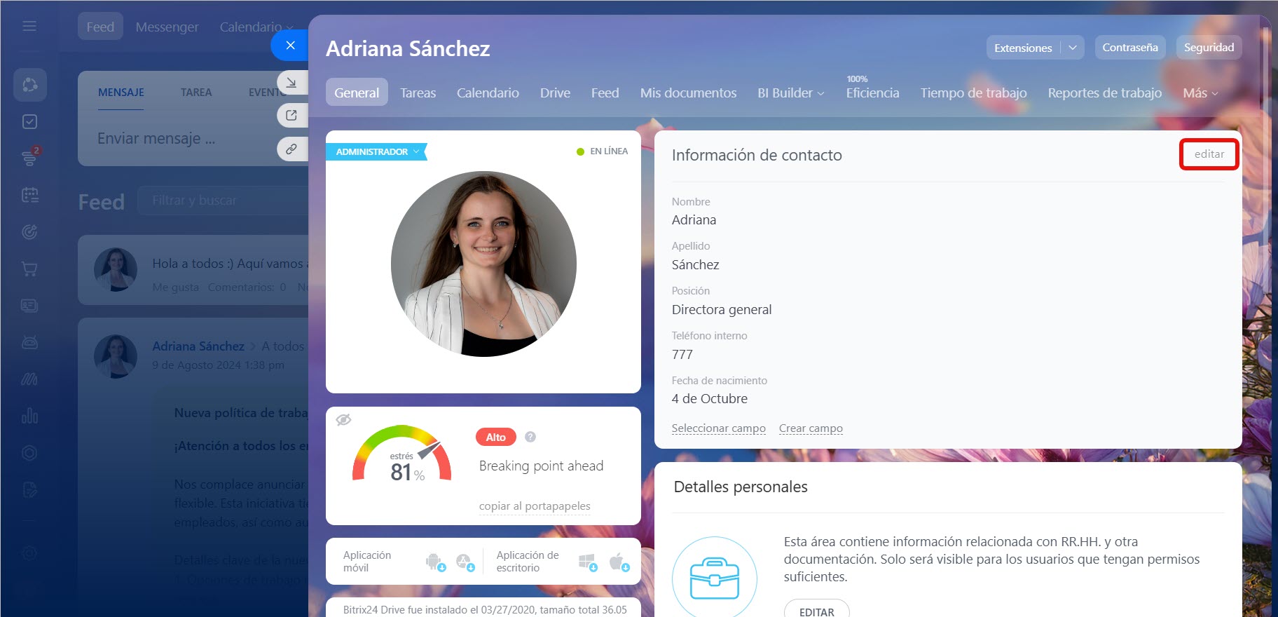 Cambiar los detalles y el diseño del perfil en Bitrix24